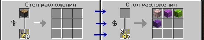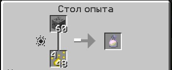 Этот стол позволит вам извлекать опыт из блоков, которые его содержат (например алмазный блок, угольный, блок красной пыли и т.д). В итоге вы получите в 3 раза больше опыта, чем если бы добывали предмет обычным способом.