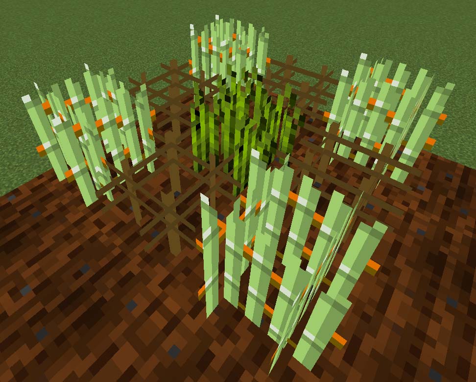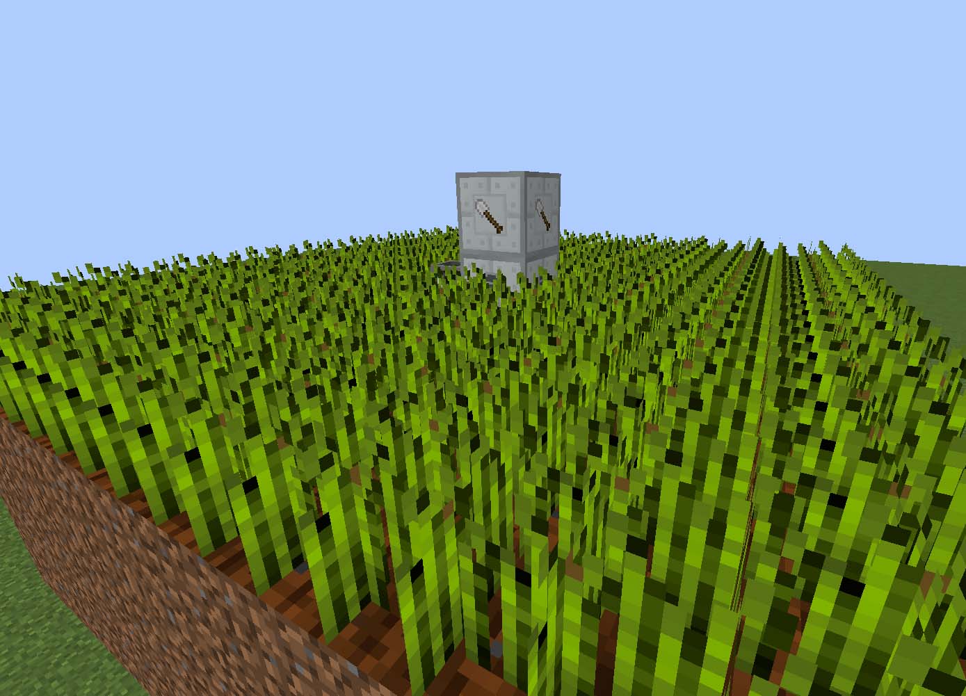 Не забудьте поставить автосадовник и поставку энергии и воды к нему, дабы немного ускорить рост растений. В дополнение можете также под каждый блок грядки поставить два блоки земли. Ну и сборщик урожая под конец.