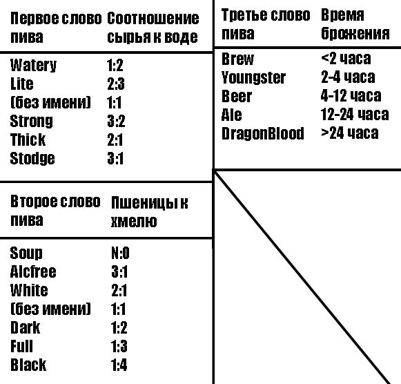 Что ж, теперь у вас есть в наличии драгоценный хмель, пшеница, и вода в капсулах (не в универсальных!!!!). Теперь необходимо рассмотреть, как в принципе получать нужные виды пива.