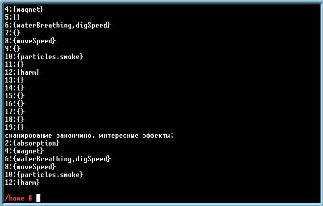 По завершении программа выдаёт что интересного нашлось, в моём случае из полезного, это поглощение, магнит, подводное дыхание со скоростью копания и скорость бега
