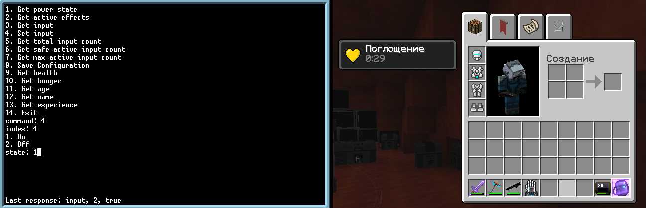 И так, хотим мы значит поглощение и магнит, заходим в программу и выбираем 4 пункт, затем номер канала (в моем случае 2) и выбираем "включить", тобишь 1. Нажимаем и проверяем.